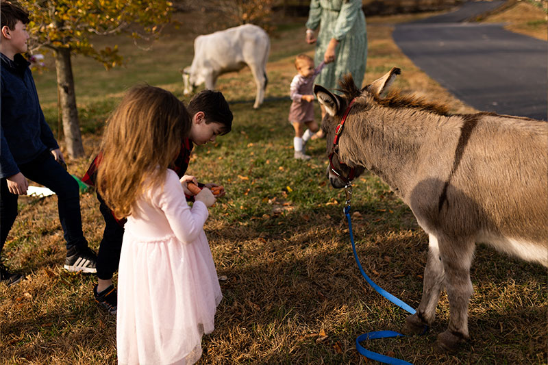 David grew up with the petting zoo life. He lived at Arch Acres Misfits until he and Goliath were about 4 years old. When they moved here, they quickly became friends with Sweet Pea and Lacey. Lacey is always the friend of the Donkey group <3 We recently moved Kota to our farm, and she is also a good friend for the donkey group.