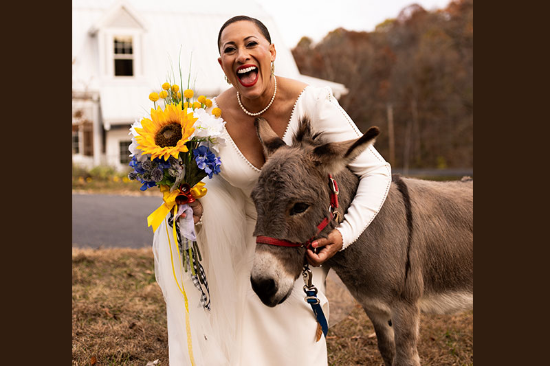 At work, David is very sweet with the kids. He gets a little nervous if they run near him too much, but if they well behaved, he loves them. David has been at 3 weddings for photos and to hang out with the kids!